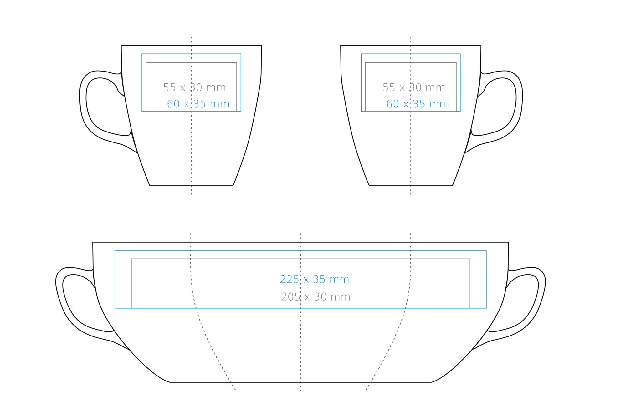 Verfügbare Dekortechniken Direktdruck (205×30 mm) Transferfolie (60×35 mm) Transferfolie rundherum (225×35 mm) Xpression – organische Transferfolie (60×35 mm) Xpression – organische Transferfolie rundherum (225×35 mm) Sensitive Touch (225×35 mm) Grawer |