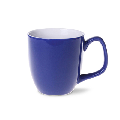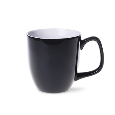 Bunte Keramik, glänzende Außenseite und weiße Innenseite oder ein ganz weißer Porzellanbecher.