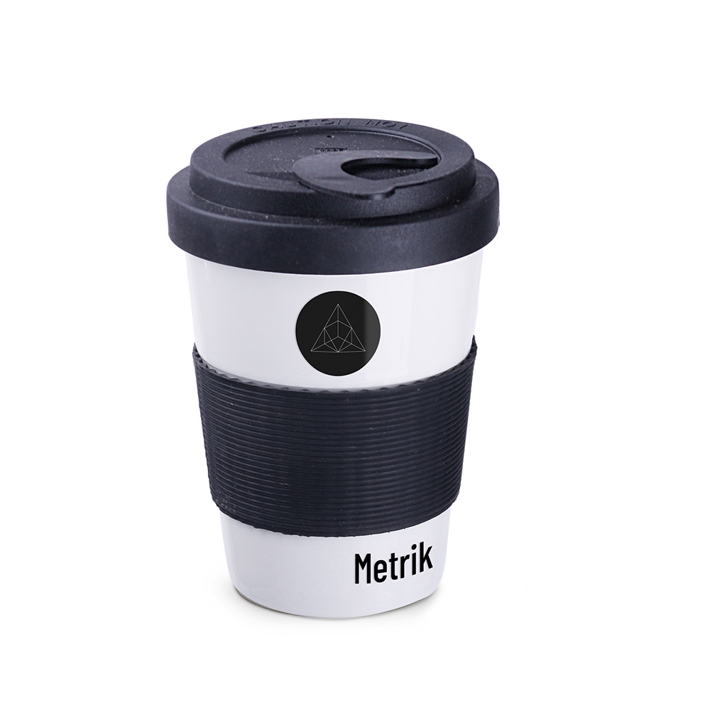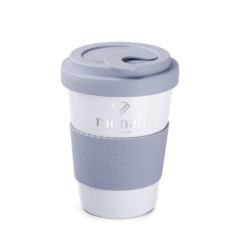Elegance ist eine Porzellantasse mit Deckel und einem 45 mm breiten dekorativen Silikonband, die für einen wahrhaft schicken Look sorgen.