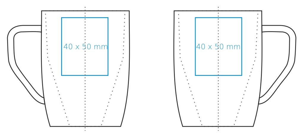 | Verfügbare Zusatzdekore Druck am Henkel (30×10 mm) Druck innen (Wand) (35×10 mm) Druck auf dem Boden (innen) (ø30 mm) Druck auf dem Boden (außen) (30×10 mm) Personalisierung Nadruk złotem Nadruk srebrem Zdobienie powierzchni obłej Nadruk tablicowy Nadruk przez rant Termo Ink |