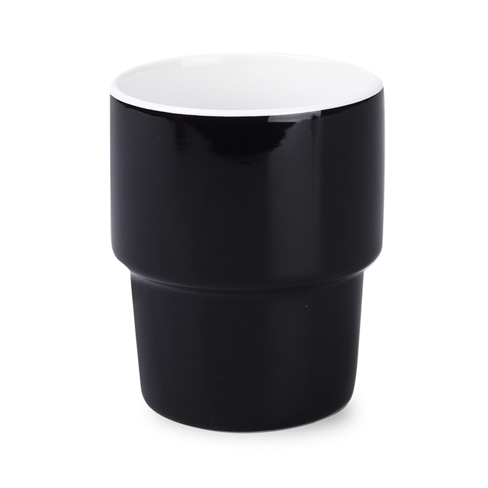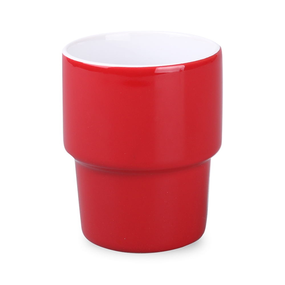 Dieser Becher im Retro-Stil ist in verschiedenen Farben erhältlich. Dank seiner besonderen Form lässt er sich platzsparend stapeln und vielseitig kombinieren.