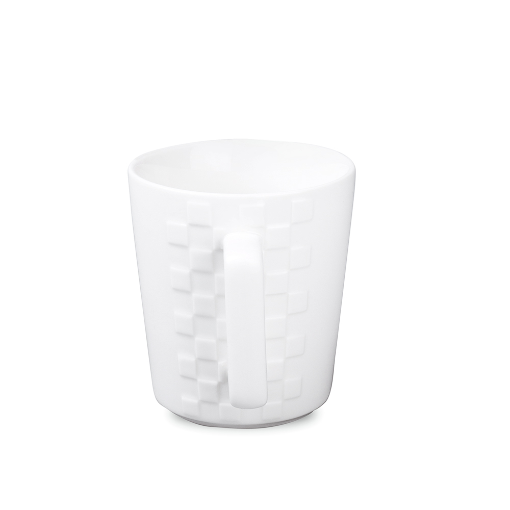 Dieser elegante Becher ist aus hochwertigem Porzellan gefertigt. Er besticht durch einzigartige Erhebungen an beiden Seiten des Henkels, die ihm ein stilvolles Aussehen verleihen. Zudem verfügt er über einen ergonomisch geformten Henkel.