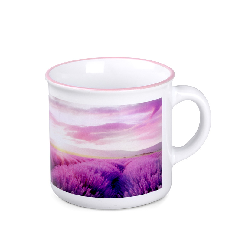 Ein zylindrisches Bechermodell mit einem wunderschön verzierten Rand, geeignet für Kunstdruckanwendungen.