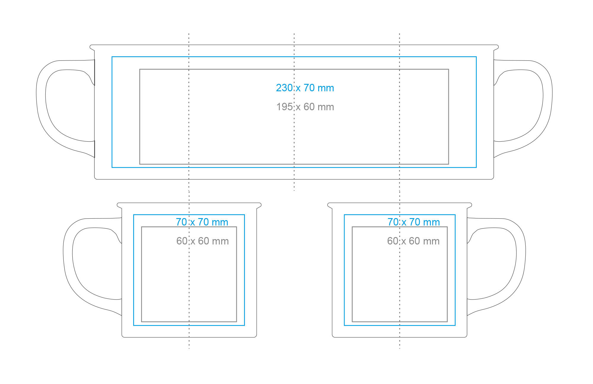 | Verfügbare Zusatzdekore Druck am Henkel (50×10 mm) Druck innen (Wand) (40×20 mm) Druck auf dem Boden (innen) (30 mm) Druck auf dem Boden (außen) (50 mm) Hand Made – malowanie rantu Zdobienie powierzchni obłej |