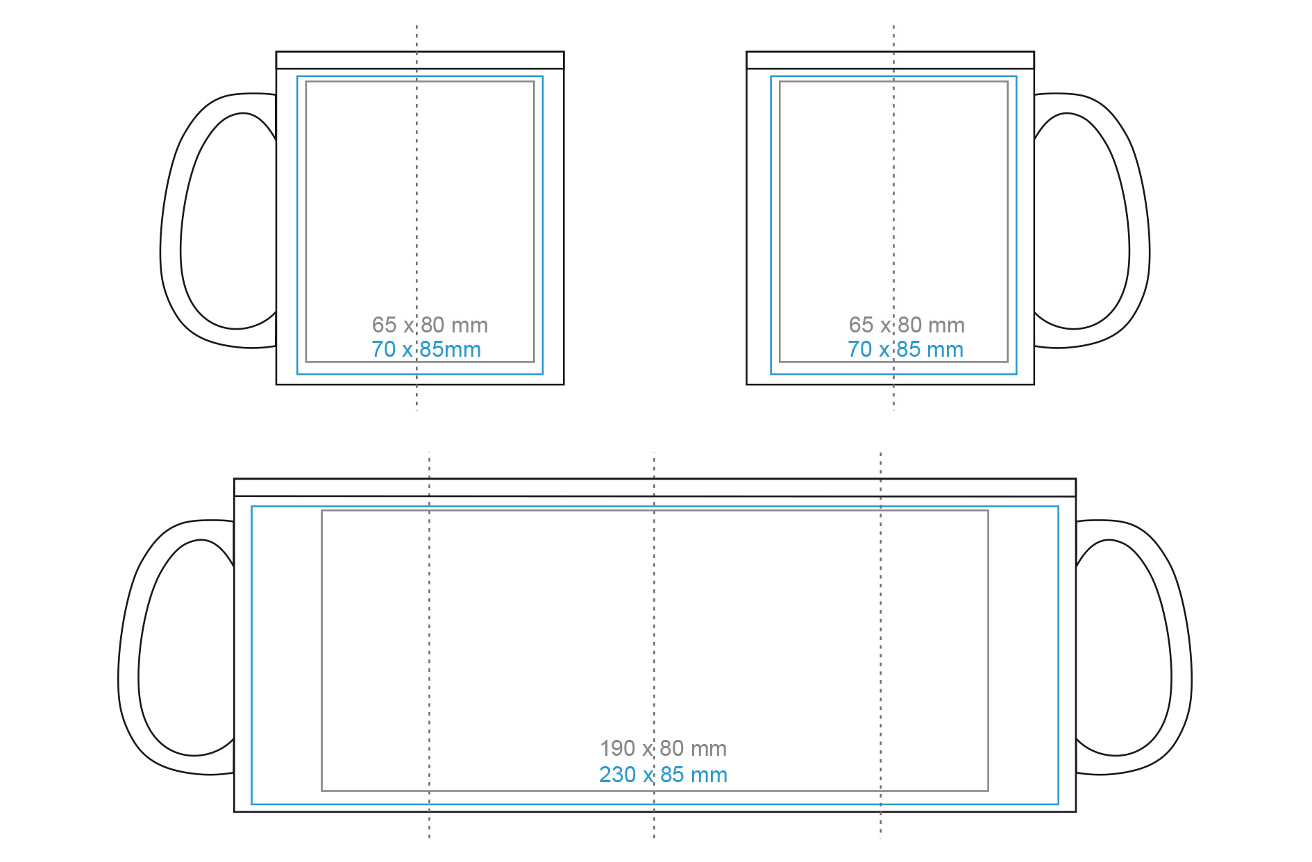 | Verfügbare Zusatzdekore Nadruk dookoła (pod uchem) Druck am Henkel (50×10 mm) Druck innen (Wand) (40×20 mm) Druck auf dem Boden (innen) (ø30 mm) Druck auf dem Boden (außen) (ø55 mm) Dekorstreifen Personalisierung Nadruk tablicowy Nadruk przez rant Hand Made – malowanie rantu Termo Ink |