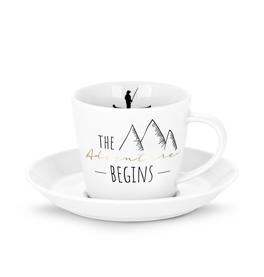 Eine 120 ml fassende, weiße Porzellantasse für jedermann. Sie liegt sowohl in Frauen- als auch in Männerhänden angenehm in der Hand.